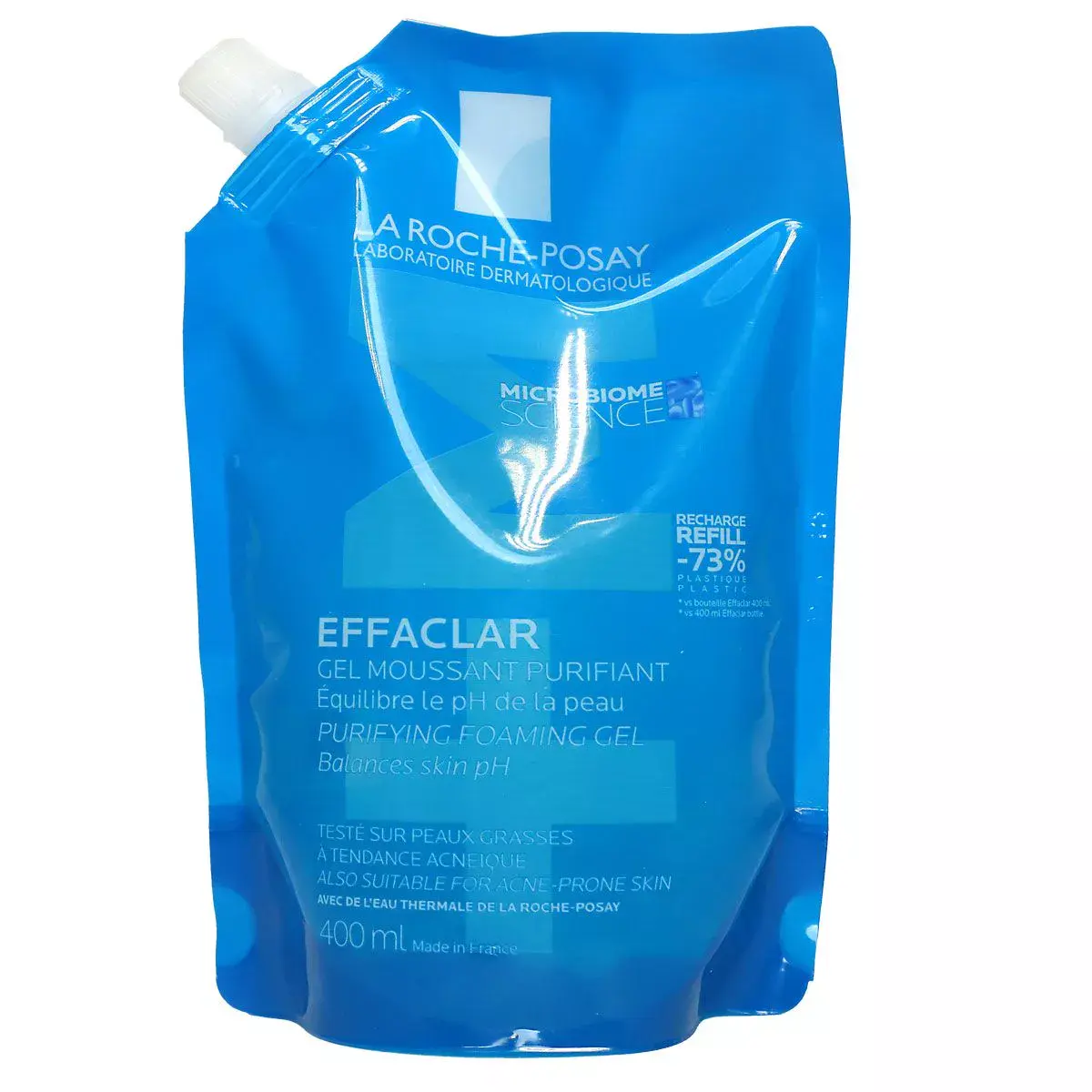 Le format Eco-recharge est plus respectueux de l’environnement avec -73%* de plastique. Rechargez votre flacon avec le Gel Moussant Purifiant Effaclar en Eco-recharge 400ml.