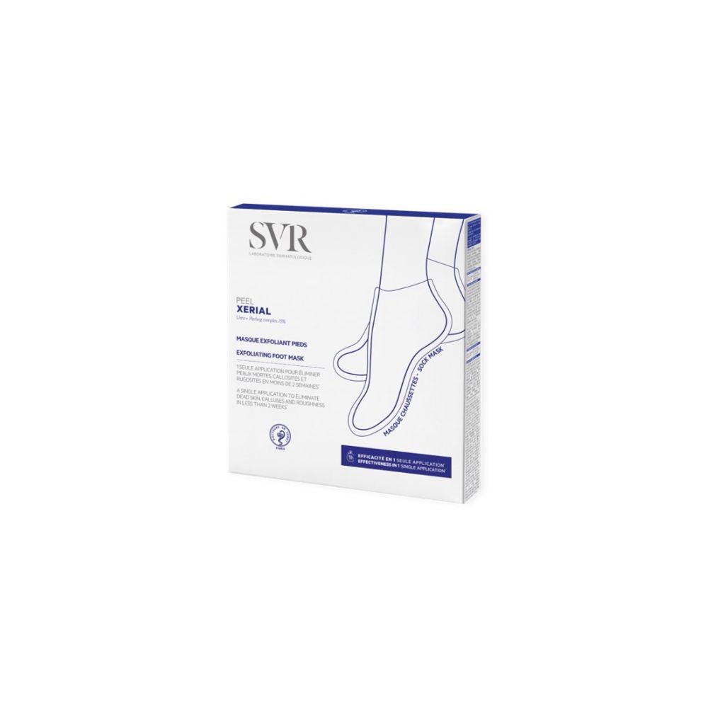 Offrez à vos pieds secs, rugueux ou abîmés un soin exfoliant intensif ultra‑efficace avec SVR Xerial Peel Masque Pieds. Ce masque chaussettes exfoliant combine des actifs kératolytiques puissants et des agents émollients hydratants pour éliminer en profondeur les zones de corne, de callosités et de rugosités tout en respectant les zones sensibles de la peau.